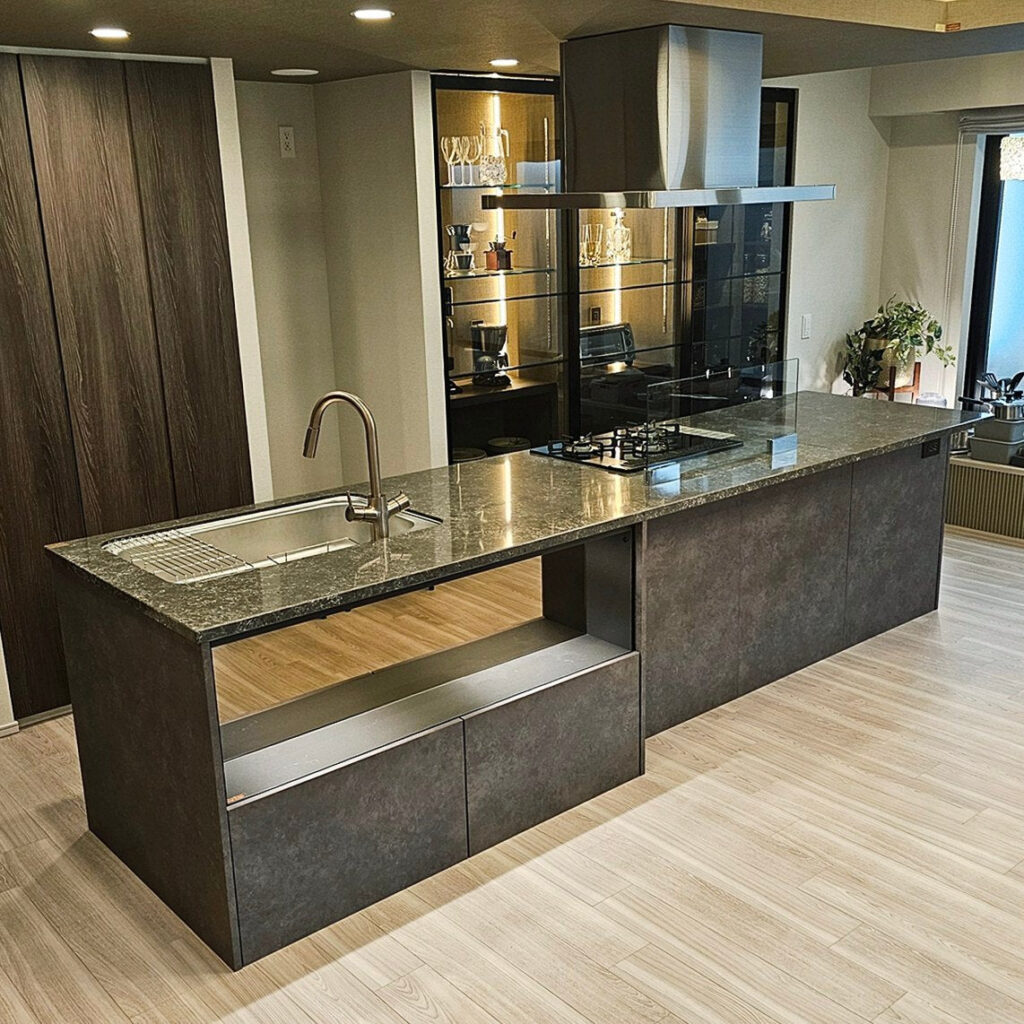 【4-8GMAS01】高級品 タカラスタンダード ペニンシュラ型 システムキッチン 左シンク 間口3035 天板裏カケあり