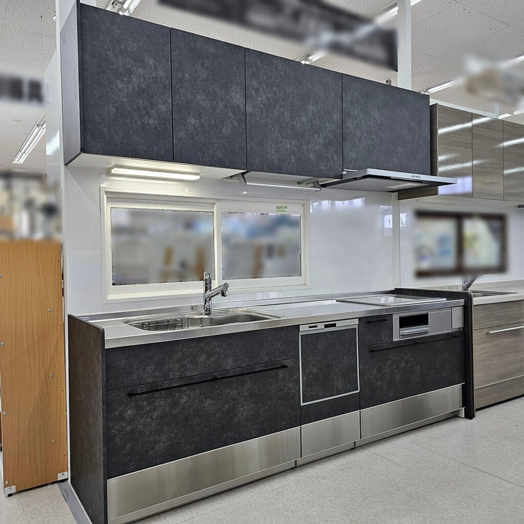 【NWK01】タカラ システムキッチン 左シンク/食洗器/レンジフード/コンロ/水栓/吊戸棚/W2430/モデルルーム展示設置品