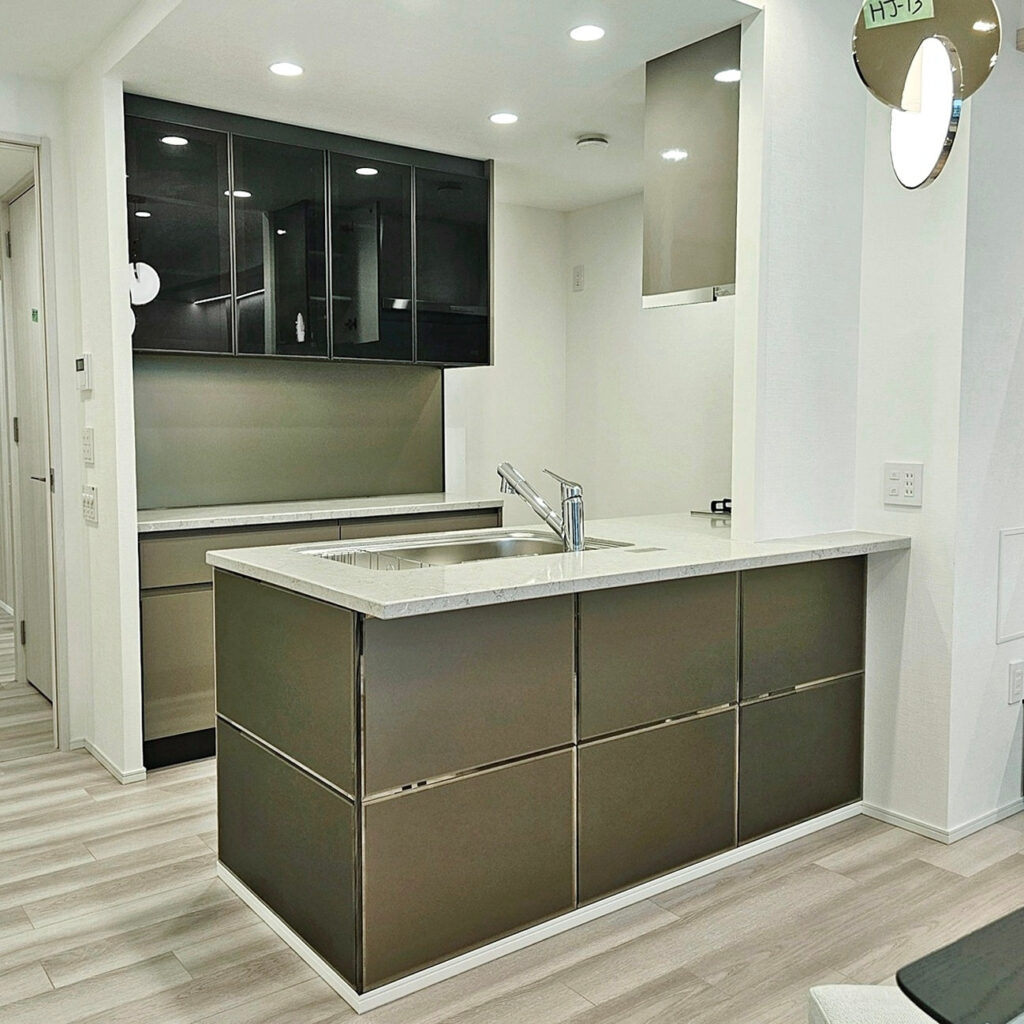 【PSF01_1】タカラスタンダード ペニンシュラ型(欠込み有) システムキッチン+カップボード 右シンク