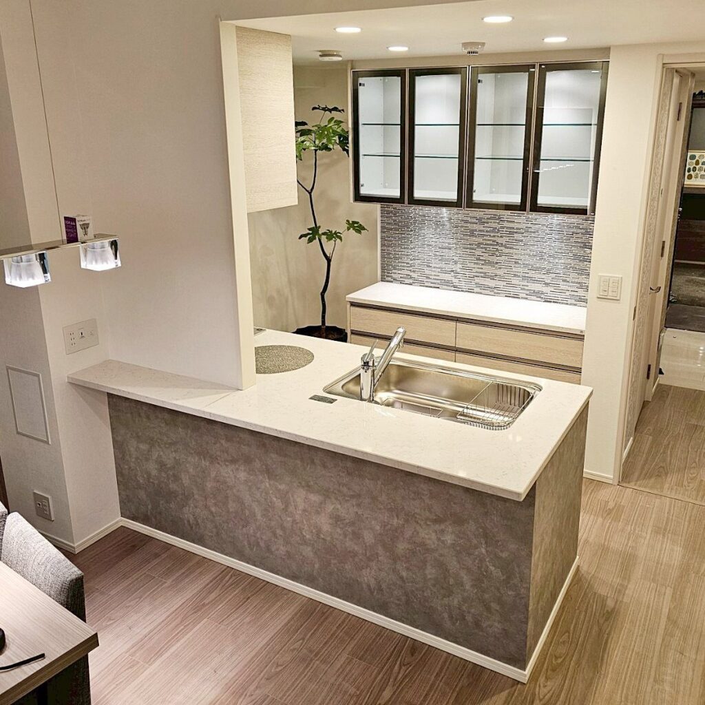 【PSK01】タカラ システムキッチン+エスエークラフト カップボード/レンジフード/ガスコンロ/水栓/W2650/モデルルーム展示設置品