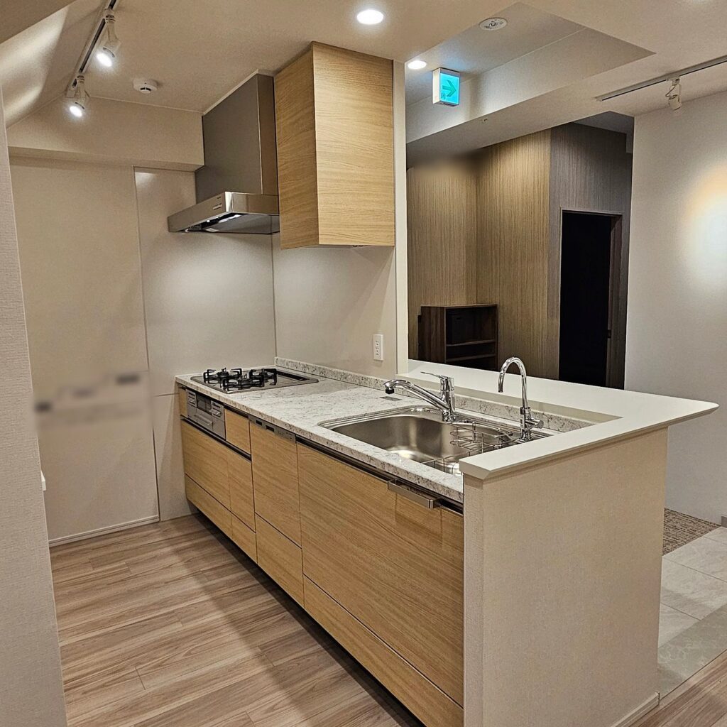 【RTK01】システムキッチン 右シンク/食洗機/レンジフード/ガスコンロ/水栓/浄水器/吊戸棚/W2400/モデルルーム展示設置品