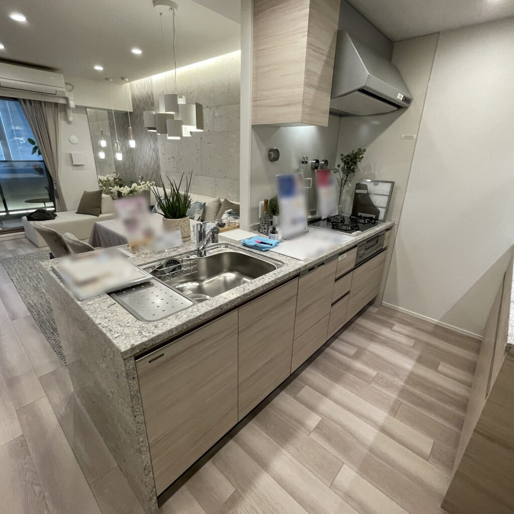 【NBA01】タカラ システムキッチン(欠込み有)+カップボード/食洗器/レンジフード/IHコンロ/水栓/W2430/モデルルーム展示設置品