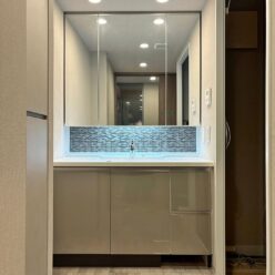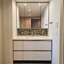 【PSK03】タカラスタンダード製 ミラーキャビネット付き洗面化粧台/三面鏡/W1100/モデルルーム展示設置品