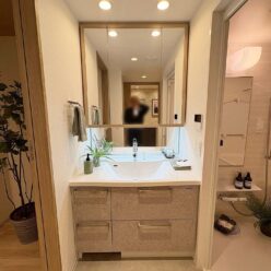 【JTK15】タカラスタンダード製 ミラーキャビネット付き洗面化粧台/三面鏡/W1200/モデルルーム設置使用品