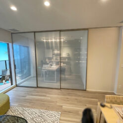 【KNK06】ガラス吊戸 3枚 可動間仕切り 引戸 上吊 枠なし
