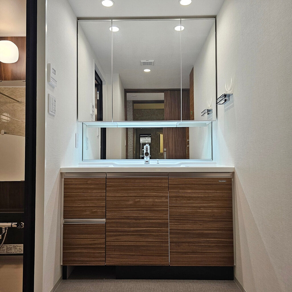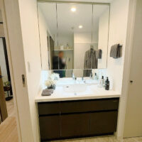 【TIM18】タカラスタンダード製 ミラーキャビネット付き洗面化粧台/三面鏡/モデルルーム展示設置品