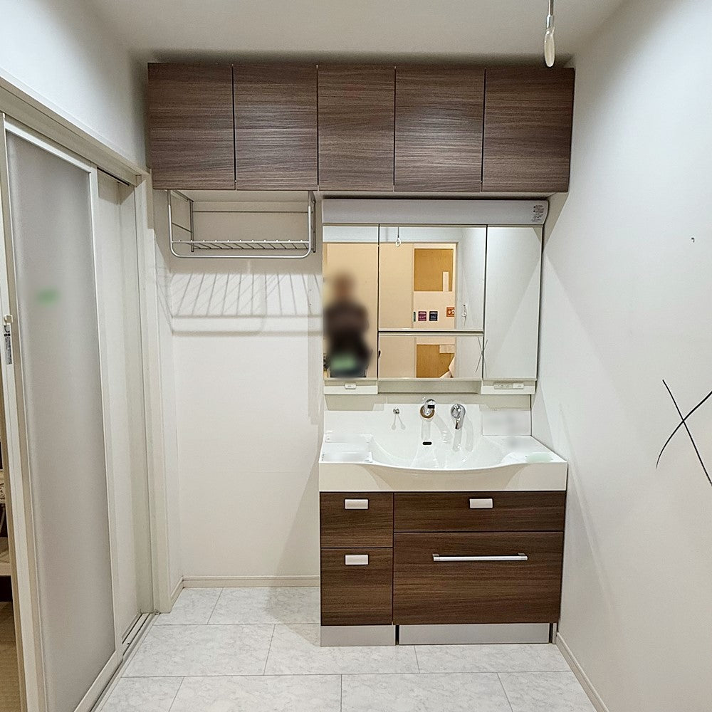 【FHH16】Housetec吊戸棚・ミラーキャビネット付き洗面化粧台/化粧鏡/ハイバックガード/洗面台W1000/展示設置品
