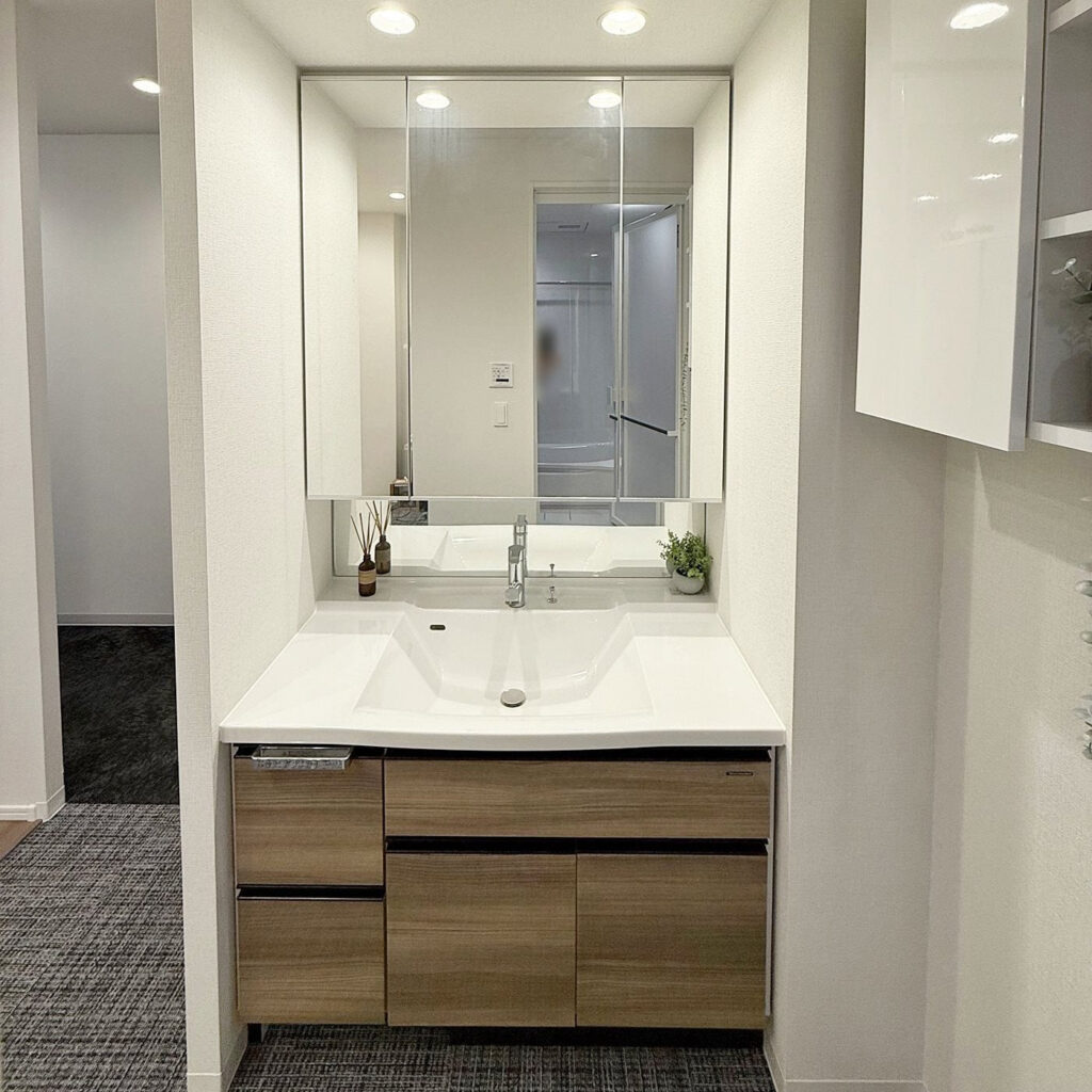 【PFK04】ミラーキャビネット付き洗面化粧台/三面鏡/W1200/モデルルーム展示設置品