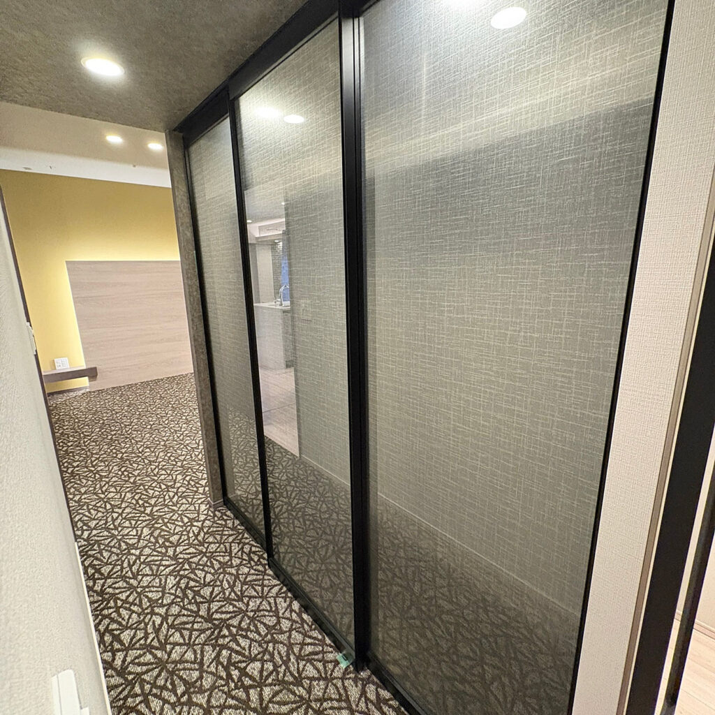 【KNK06】ガラス吊戸 3枚 可動間仕切り 引戸 上吊 枠なし
