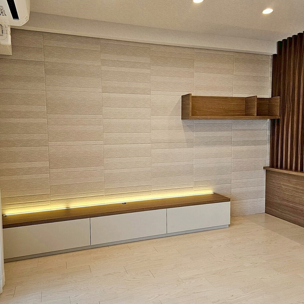 【YLS02】造作 照明付きテレビボード+ウォールシェルフ